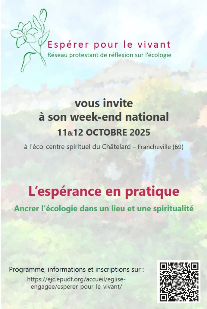 Pour plus d'informations et/ou vous inscrire : https://ejc.epudf.org/articles/esperer-pour-le-vivant/prochain-week-end-